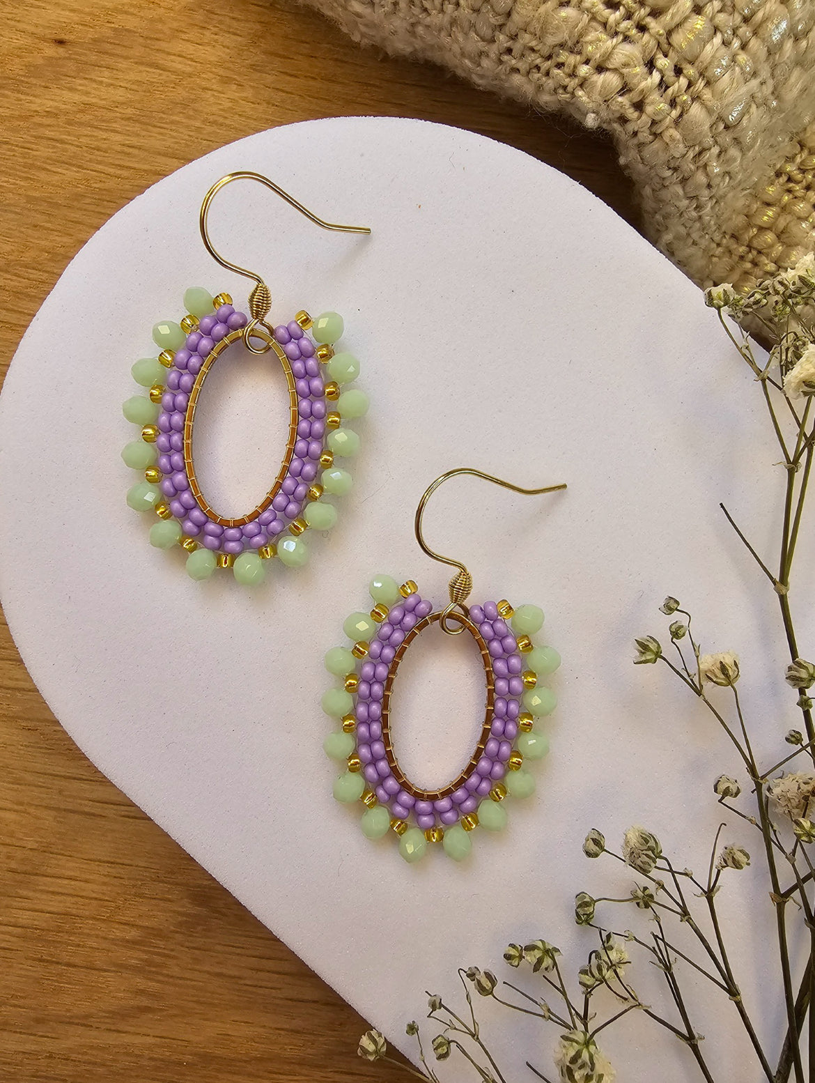 Delicate and whimsical, these lilac and powdery green beads bring a soft, feminine charm—perfect for effortless everyday magic.