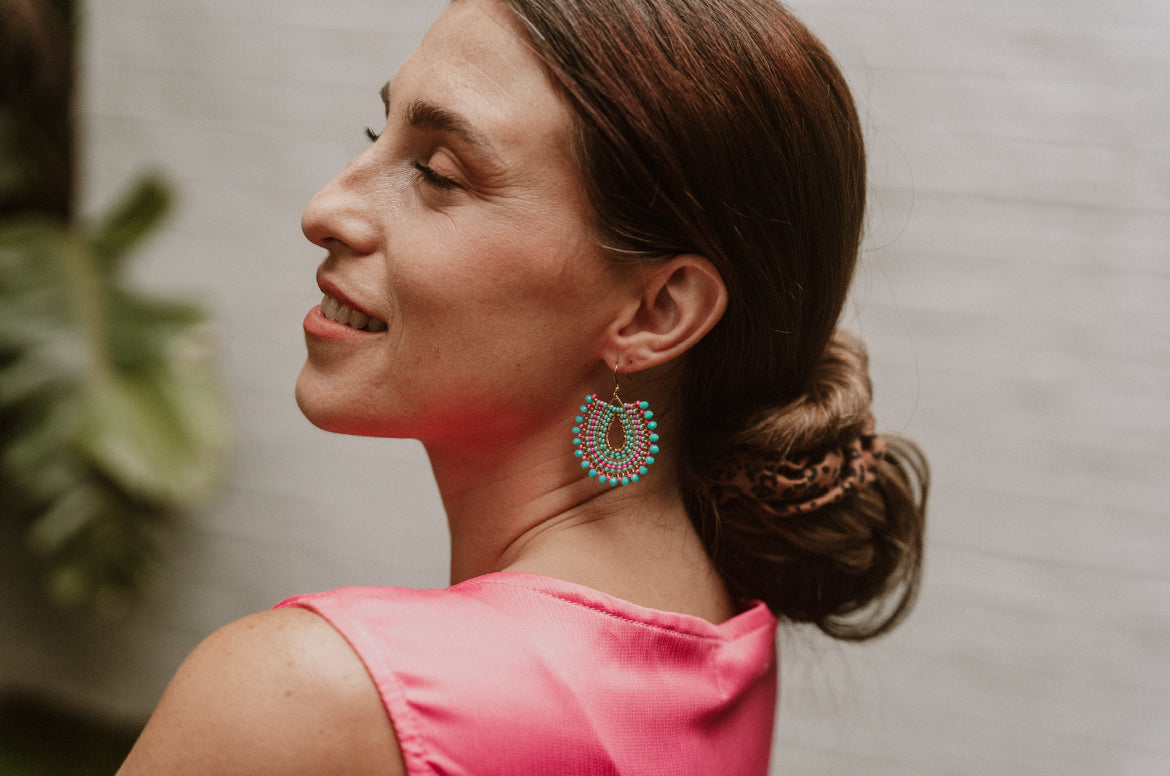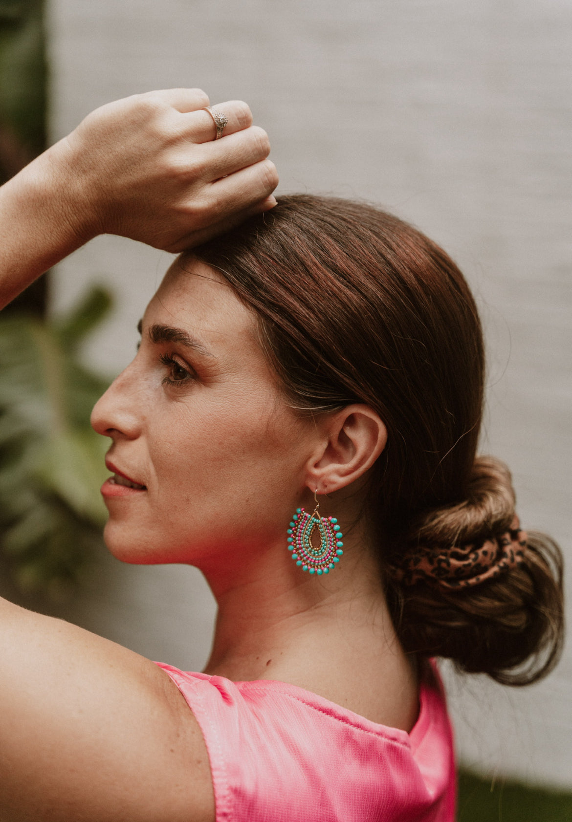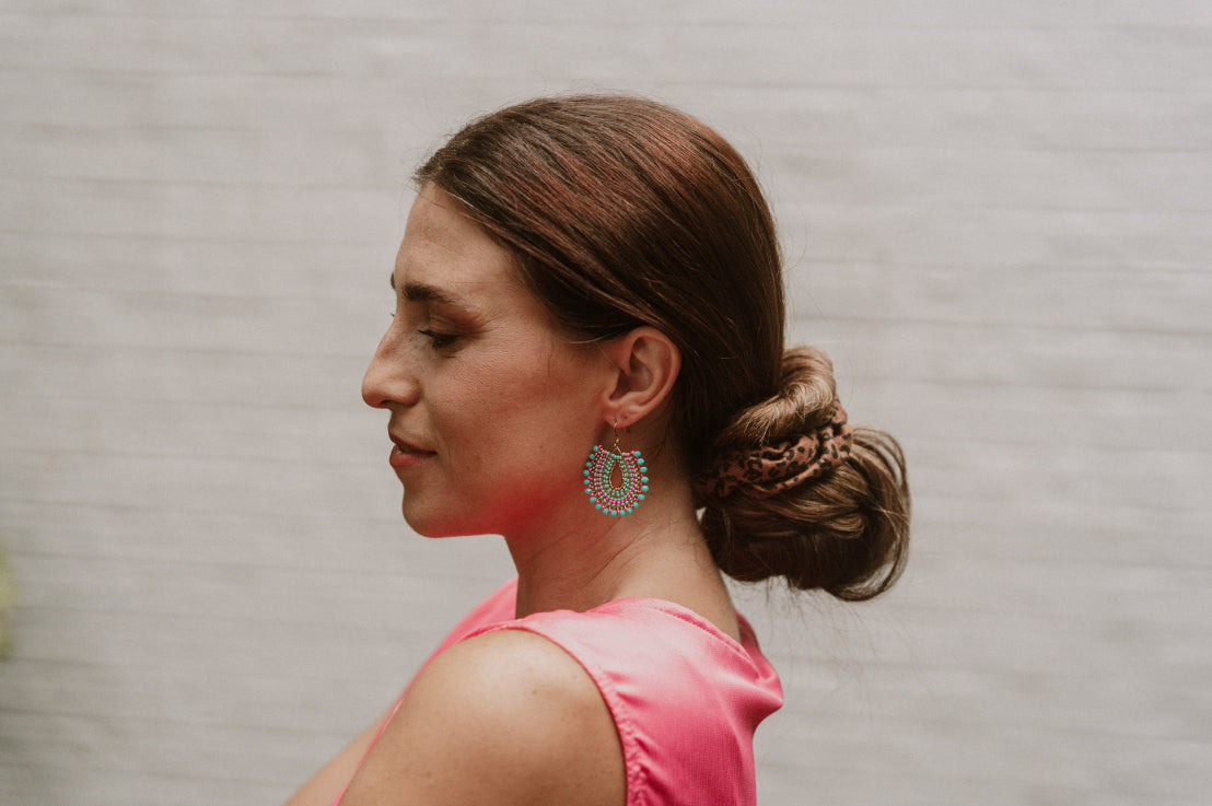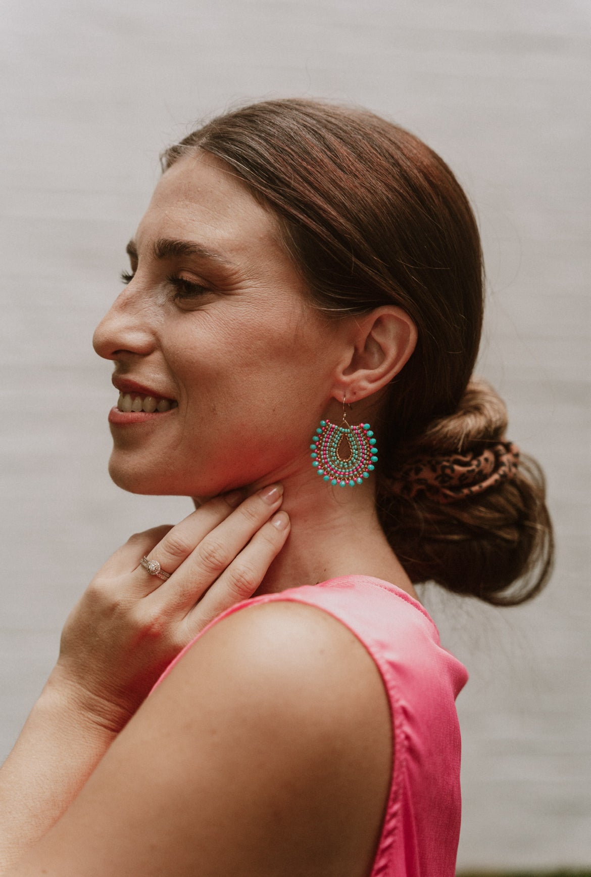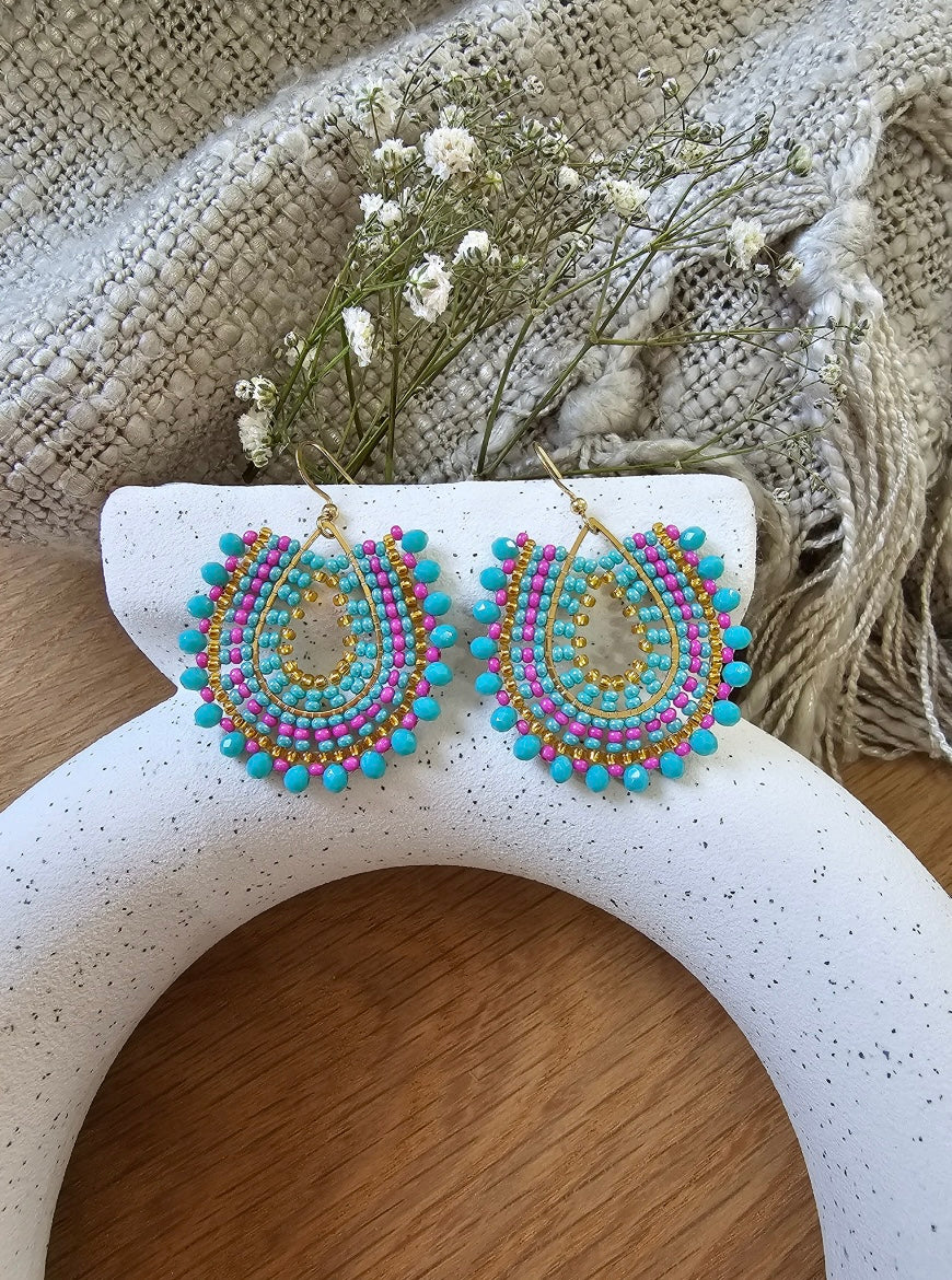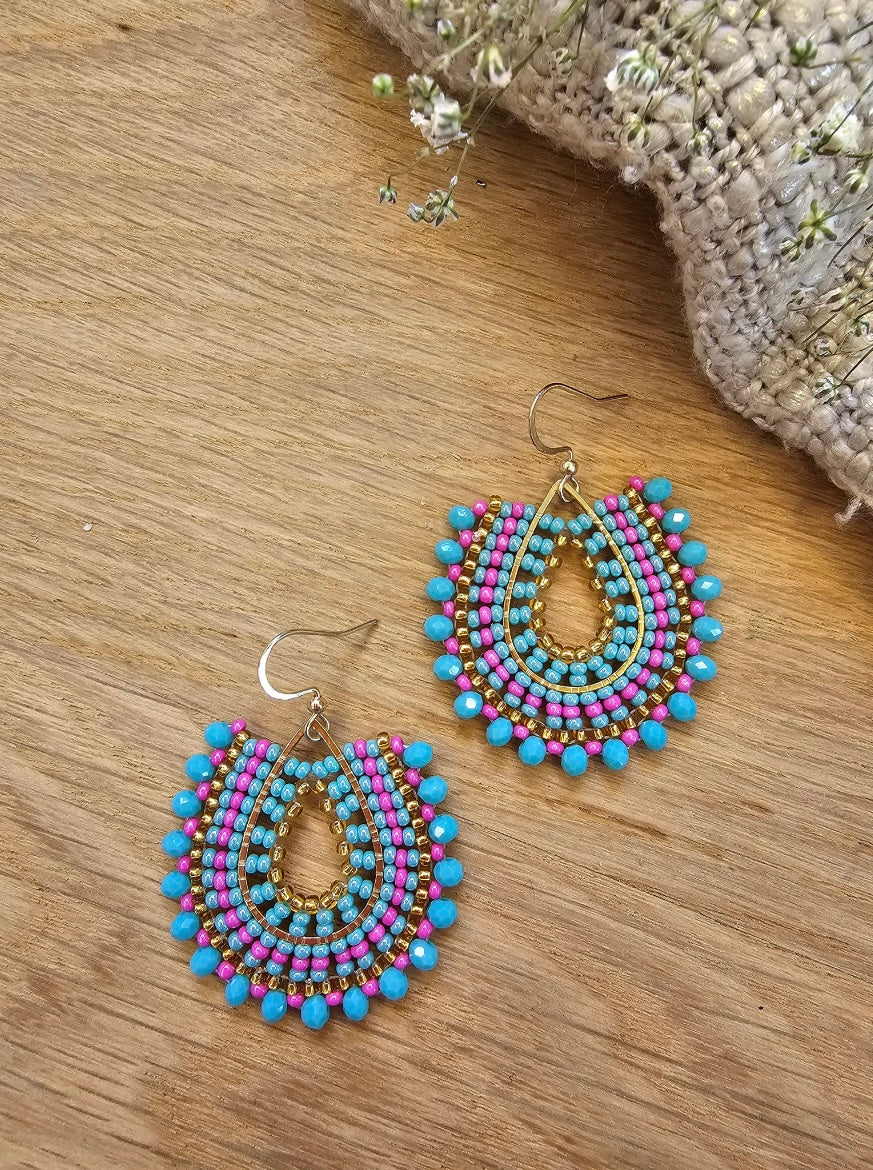 These pink and blue beaded earrings created in a playful yet elegant design are perdect for adding a pop of colour and subtle sophistication to your look.