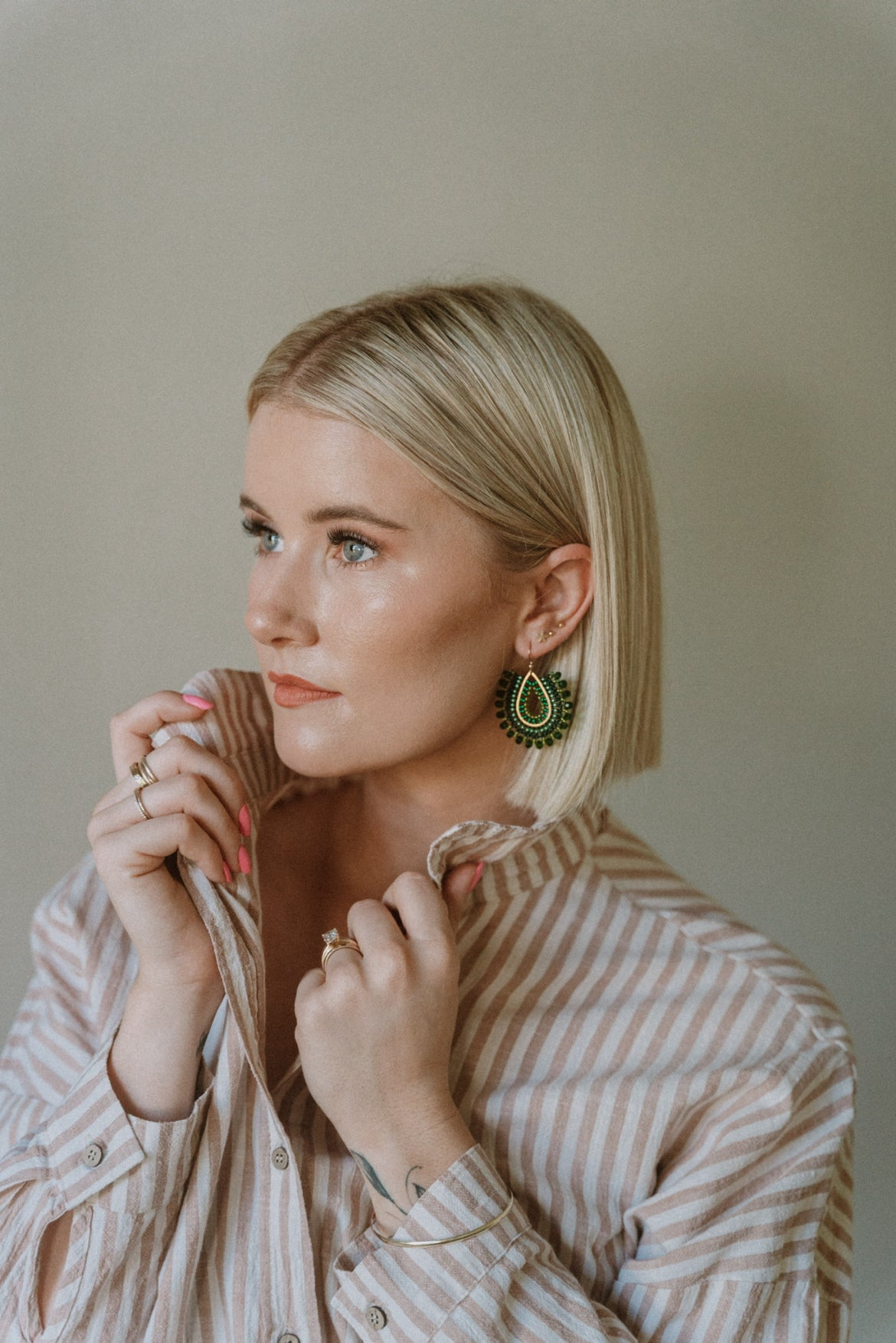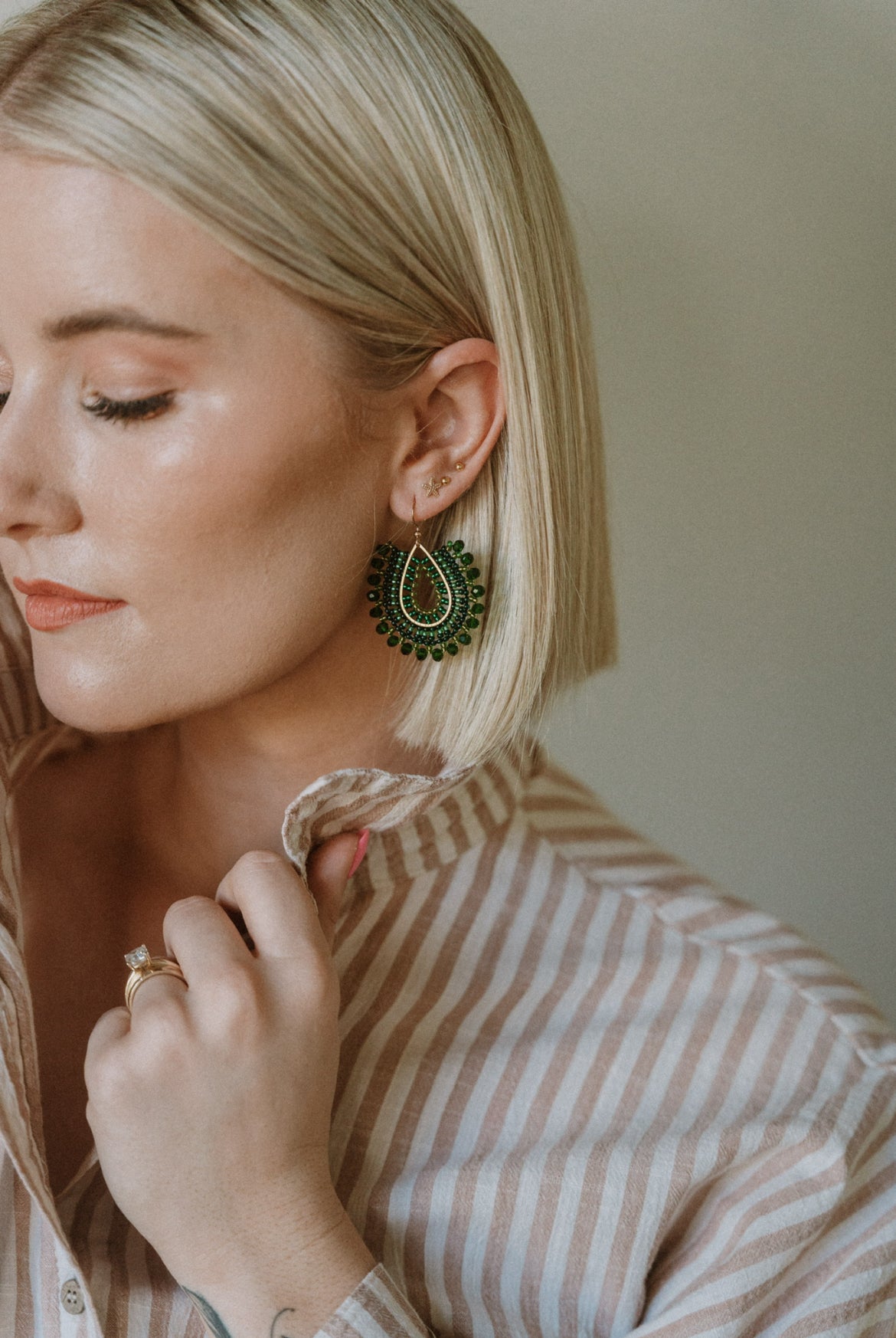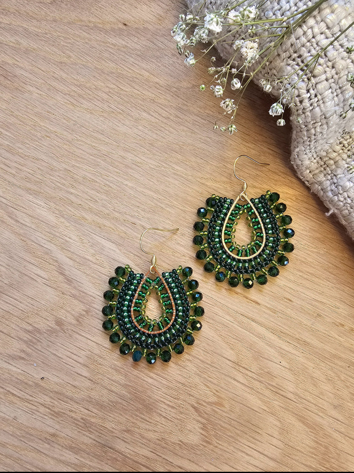 These green beaded earrings offer a refreshing and natural vibe with their rich, vibrant green beads.