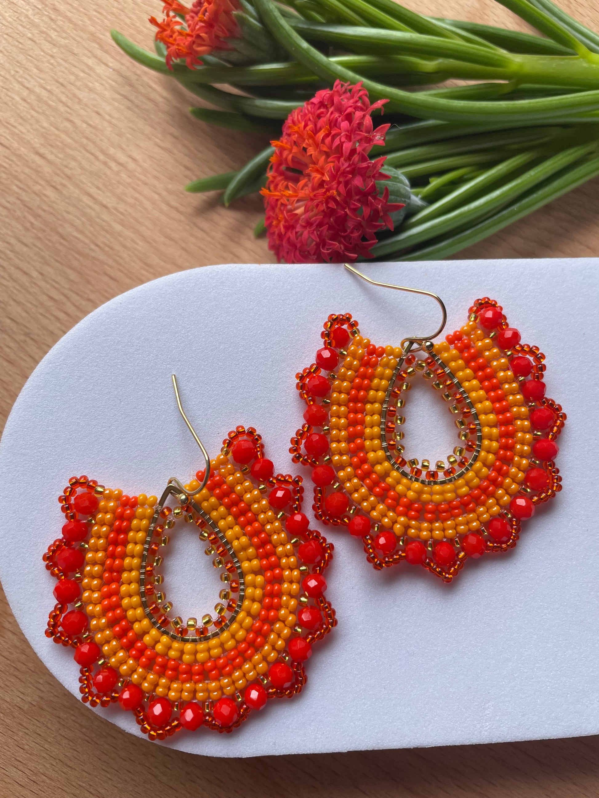 A daring bright explosions of oranges that shout summer! These earrings are large but light weight and are perfect to finish off that summer outfit. For the girls who love to shine brightly