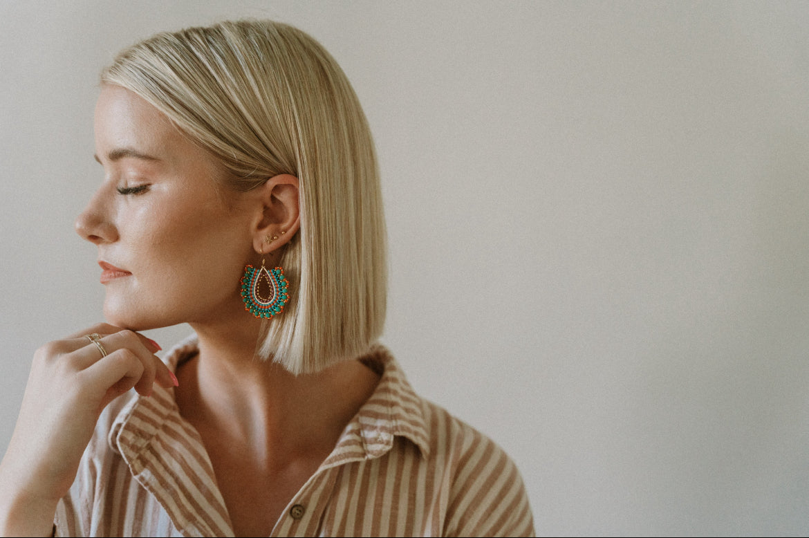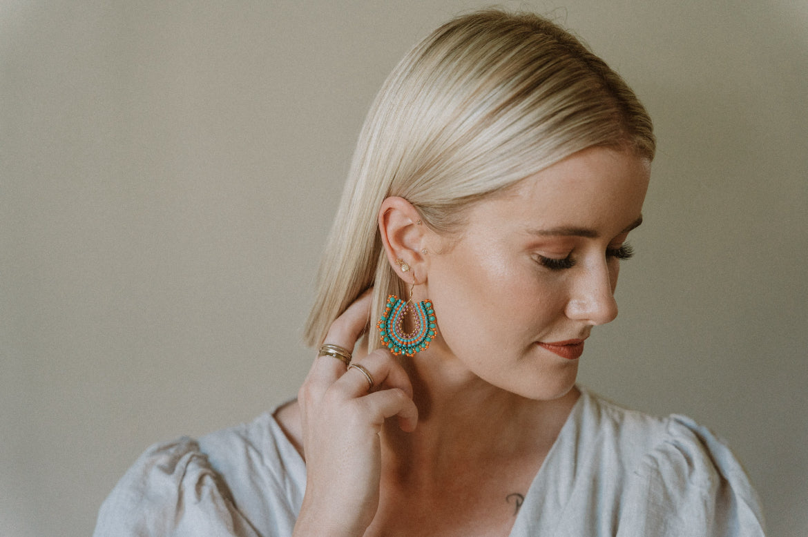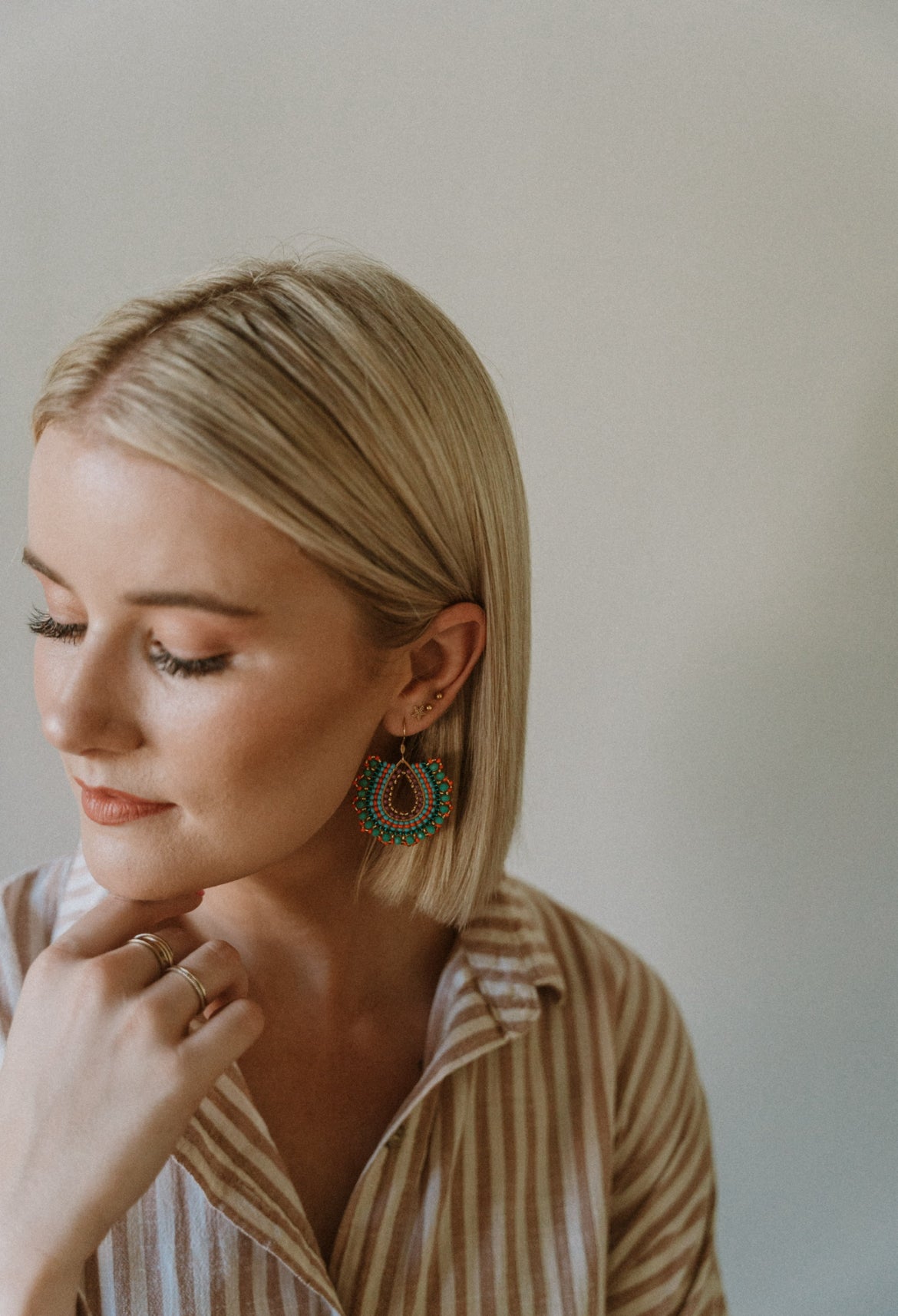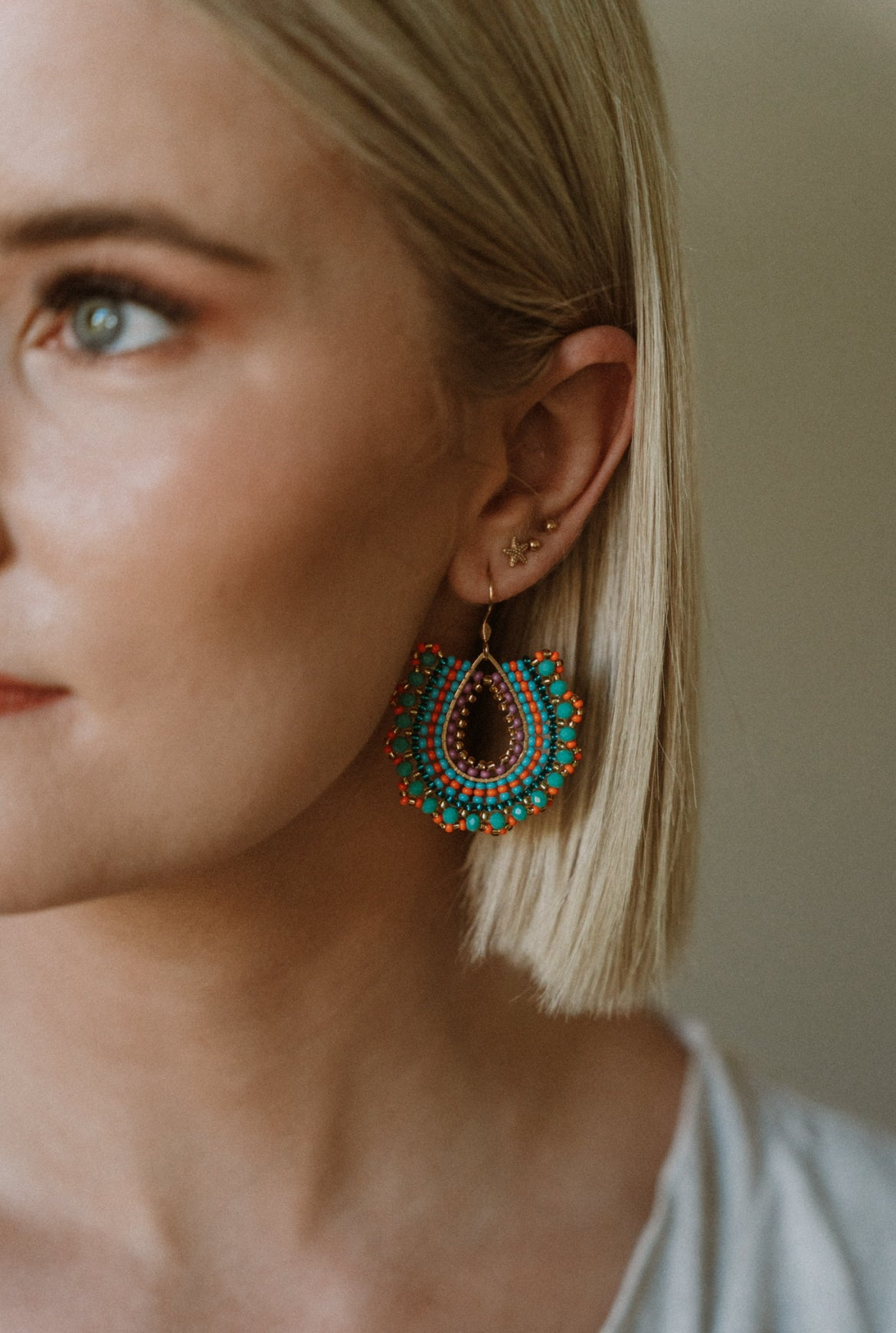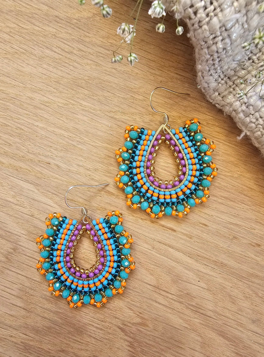 Everything bagel kinda colours, orange, gold, turquoise, blue and purple that work together to bring out a firework of a masterpiece.