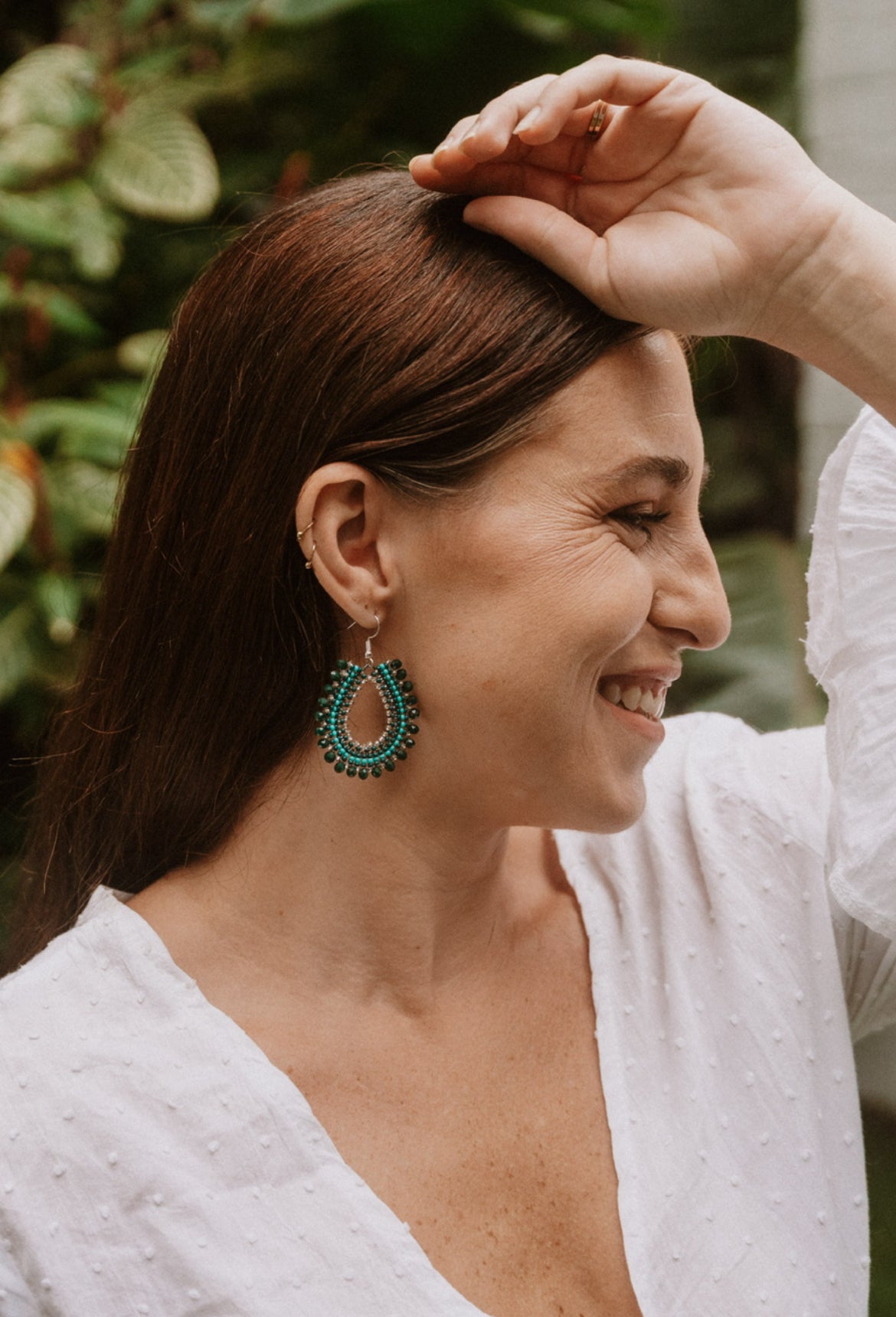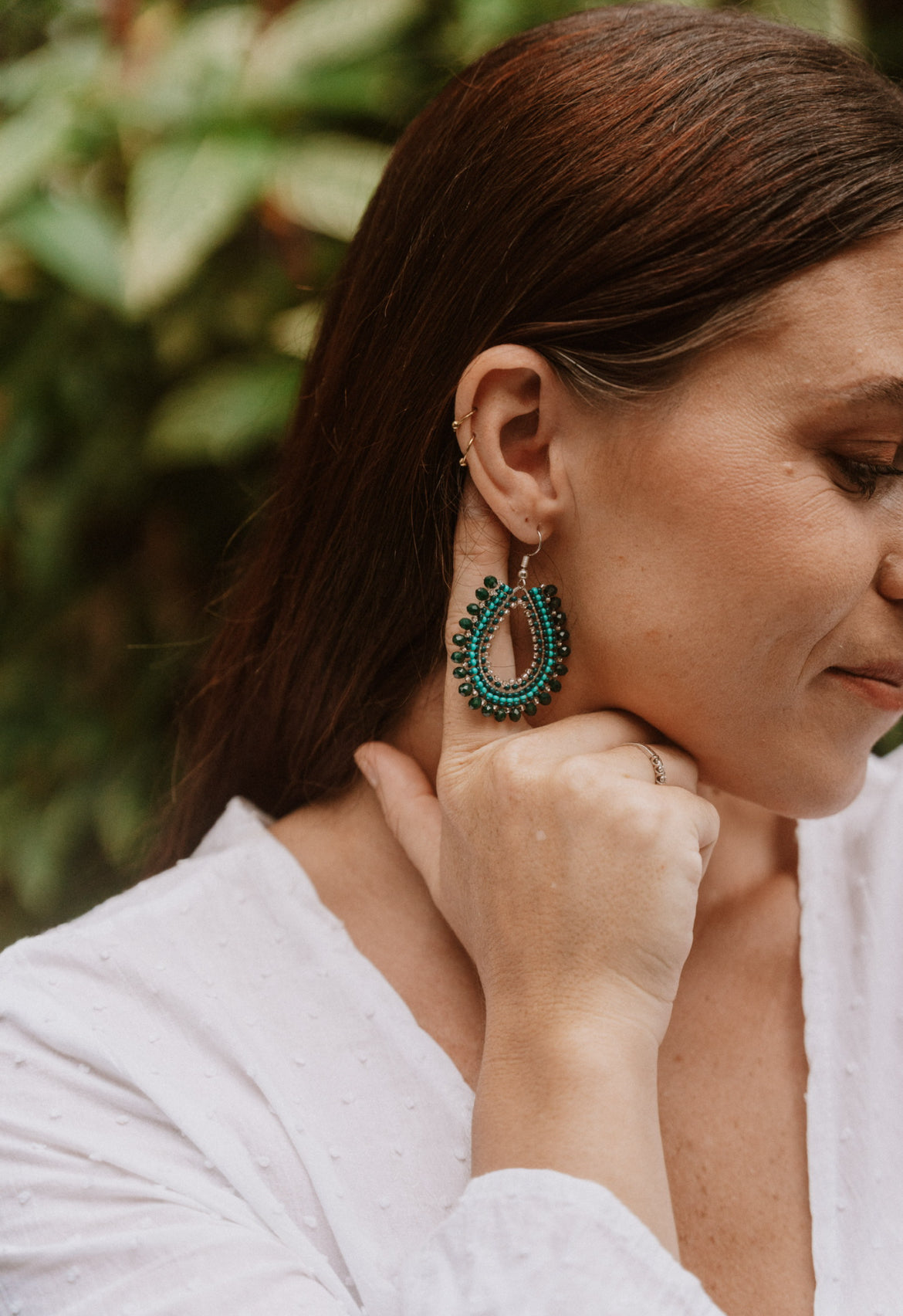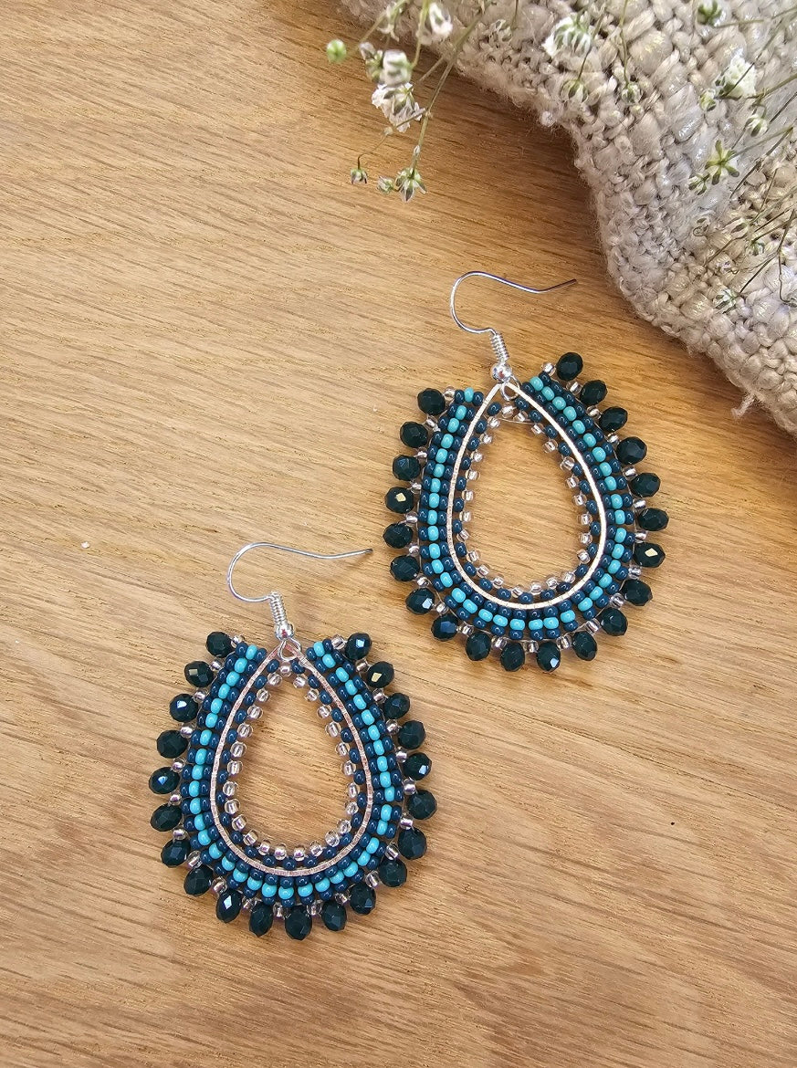 Green and turquoise Czech glass beads make this eye catching piece. Lightweight and versatile, these earrings are ideal for both casual and dressed-up looks.