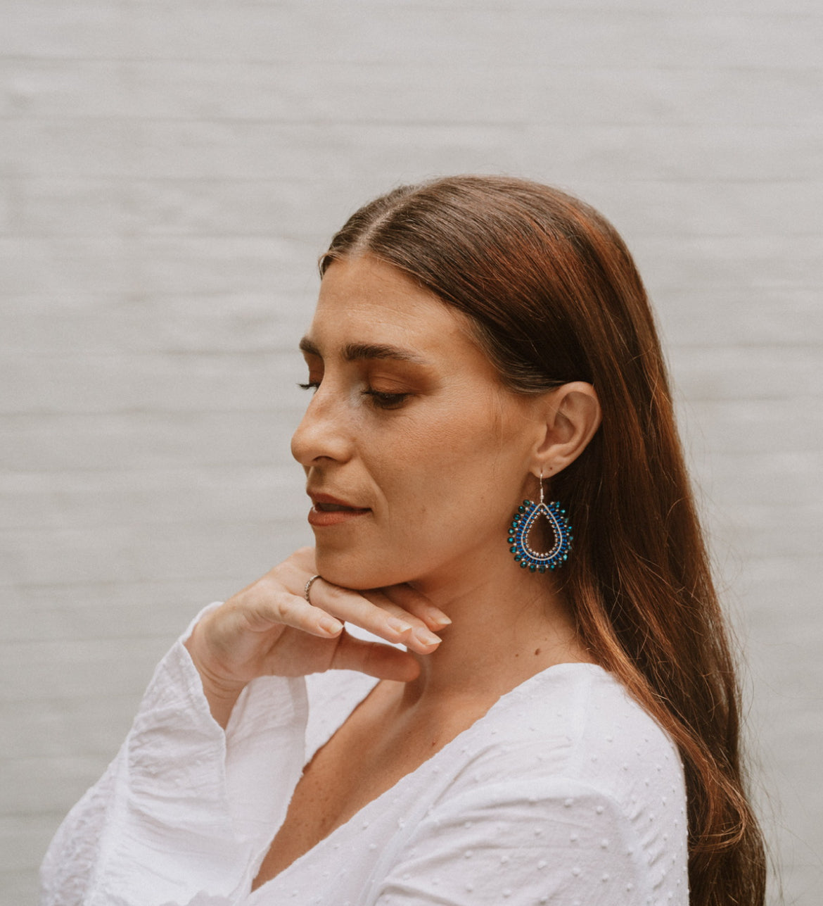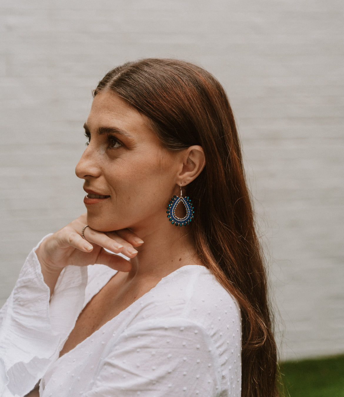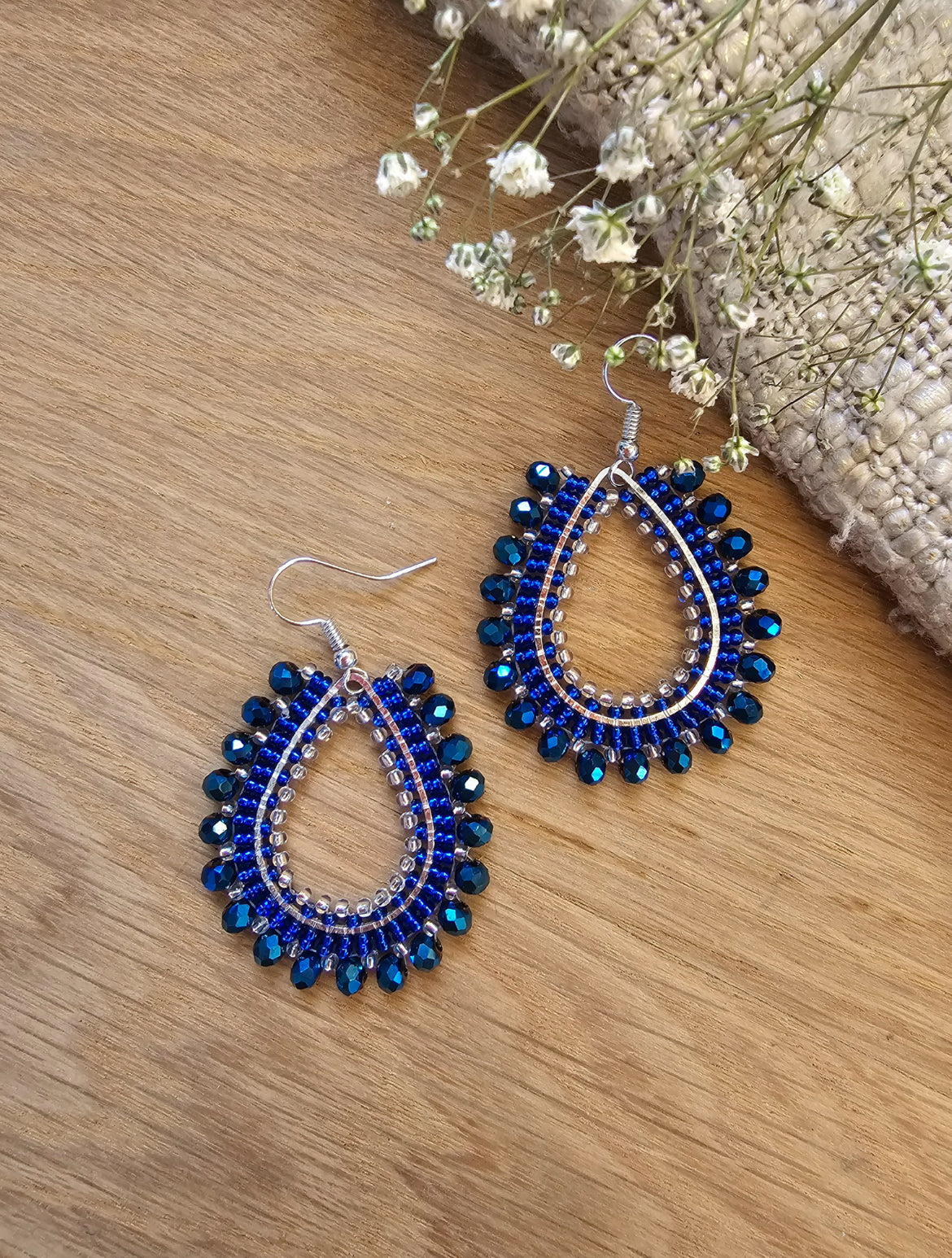 Simply dazzling. Deep intense blues with pops of clear glass check beads.