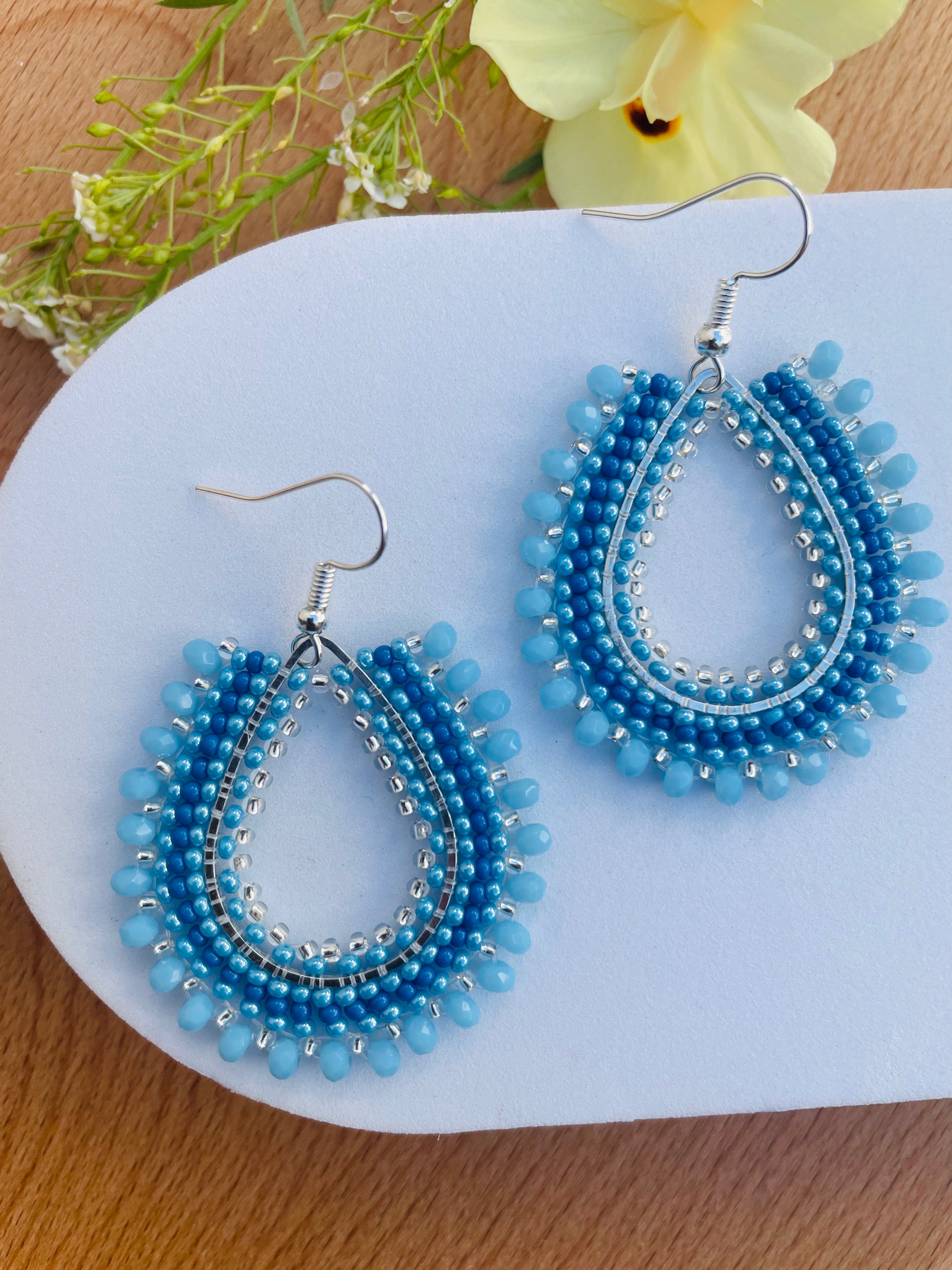 Shades of blue set on a stainless. These earrings evoke a sense of luxury and grace, making them a stunning statement piece that adds a touch of exotic charm to any outfit.
