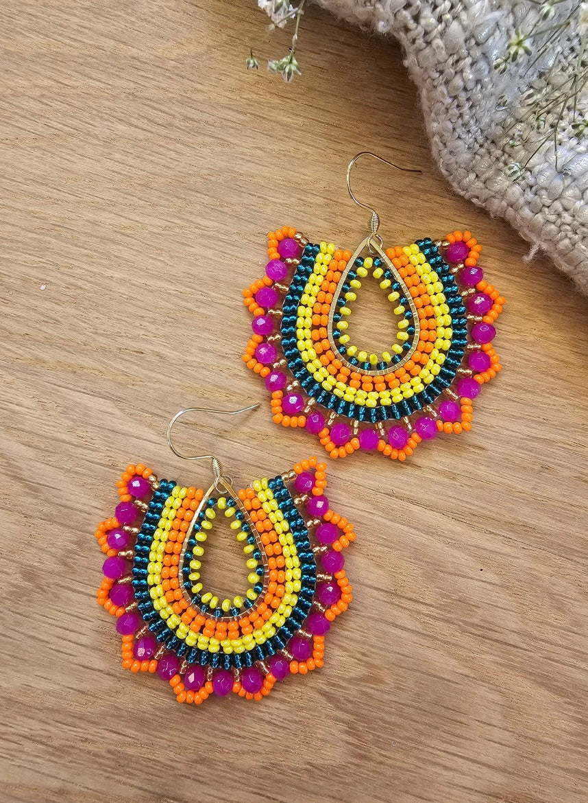 Stand out of the crowd for all the right reasons. These earrings are an explosive combo of colours. Designed for a lady who doesn’t love to stay in the shadows .